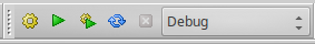 اوستده بونلاری تاپا بیلرسیز. ساری آیکون build اوچون ایشله‌نیر. آچیق یاشیل مثلث آیکون ایسه اجرا و run اوچون. سونراکی build + run اوچون و آچیق گؤی رفرش علامتی اولان آیکون ایسه rebuild اوچون.